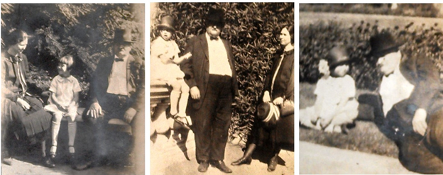 Peter Faust (Big Papa) with Alta Cadwallader Faust and Alice Louise Faust Rhodes (born 1915) in San Diego, California about 1921, based on an estimated age (6) of granddaughter Louise.