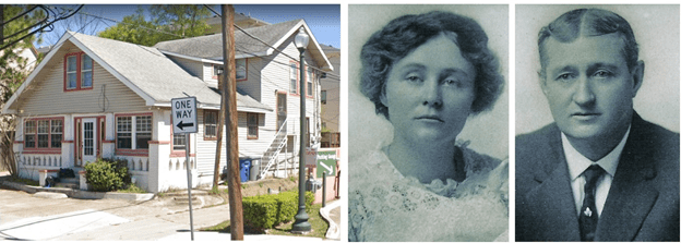 1306 Ann Arbor Avenue, Dallas, Texas, home (right) of Victor Babe and Alta Cadwallader Faust (left). This was the home of Louise Faust Rhodes’s parents. Louise is the author’s mother-in-law.”Big Papa” Peter Faustl lived here in the 1930s.