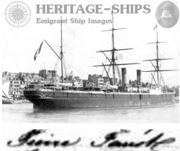 SS Amerique, the vessel that brought Peter Faust to the United States in 1879. Passenger manifest: “Pierre Faust.” Male, Age 17, born 1862, Alsace, Germany, origin Le Havre, France, final destination Texas.”