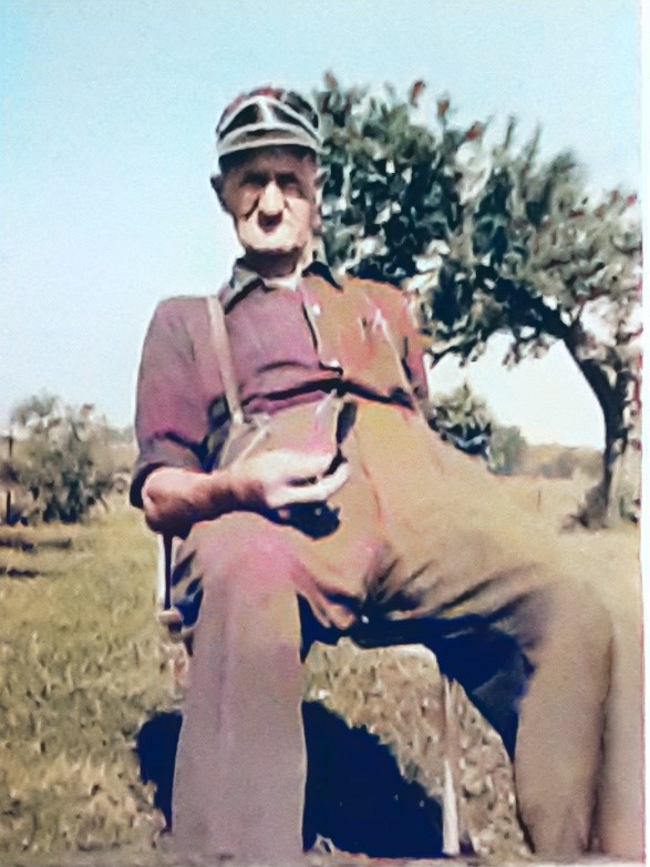 Sam A. Matteson (1889-1969) picture (colorized) taken 11 Aug 1956 at Matteson family reunion, Mt. Victory, Ohio age 67.