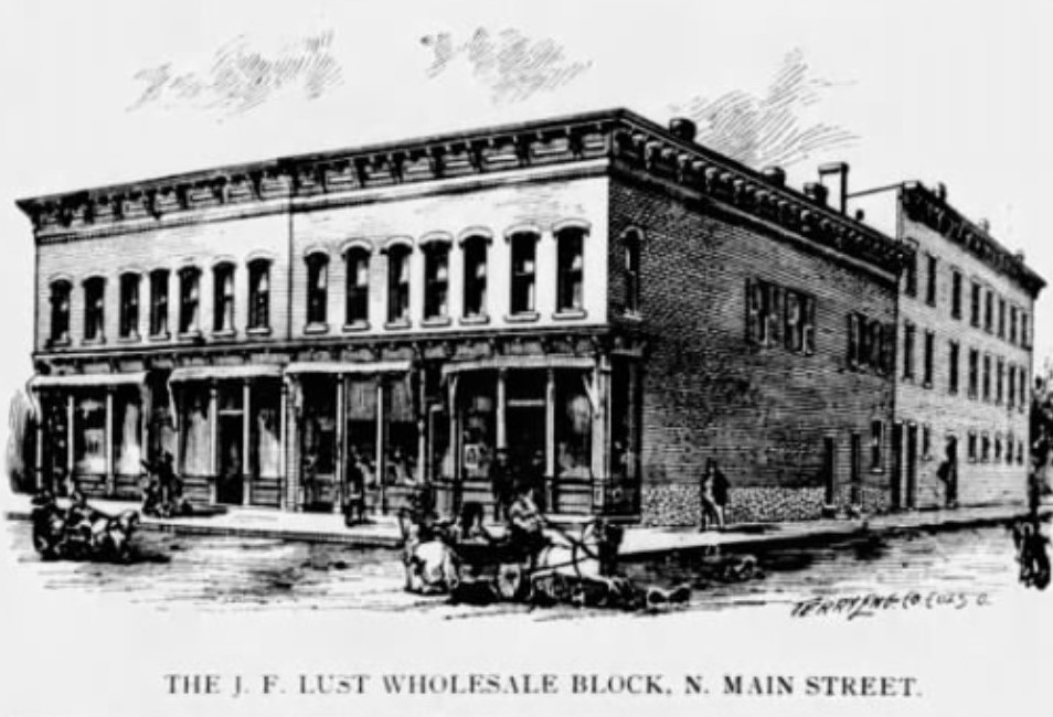 The J. F. Lust Block 131-161 N. Main St, Marion Ohio. The Marion Star Marion, Ohio 15 Jun 1895, Sat page 6.