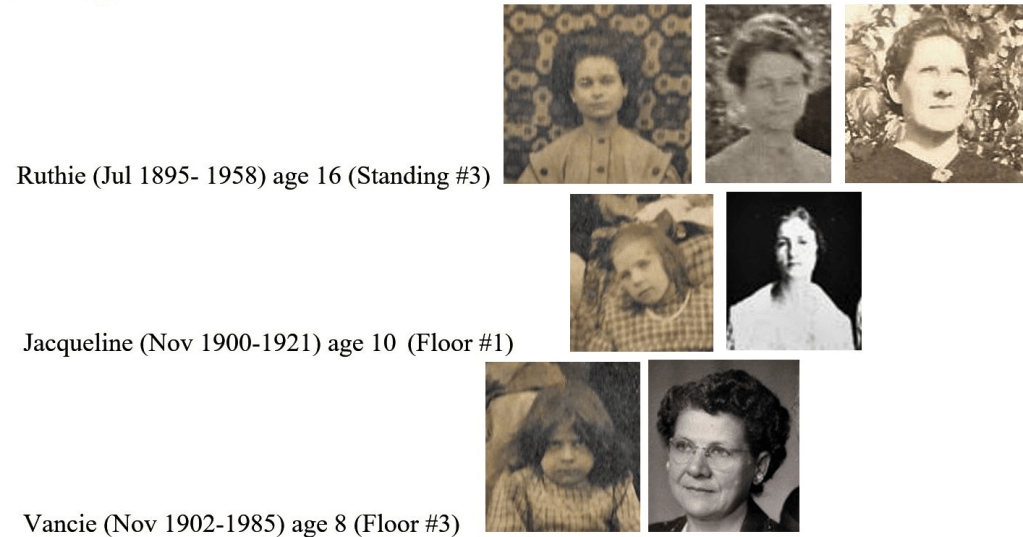 All of their children who had survived until that time can be accounted for in the photo. (Zadok had died in 1899 at age two,) Below are my identification of each of the children of Docie and Tommie along with other images.