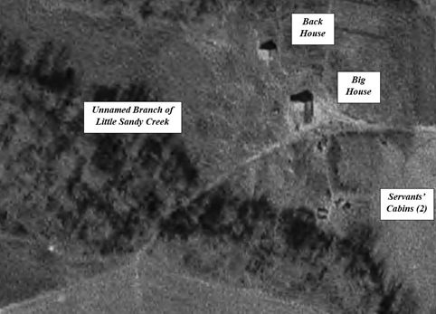 A enlargement of the area where the structures appear on the Little Sandy Creek farm,