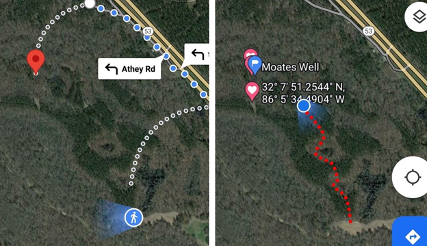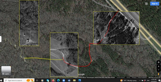 I contacted a member of Mr. Dudley’s family who is a principal in the lumber company and obtained permission to “walk the property.” On Sunday 21 May 2023, my wife and I drove to the logging road entrance off Athey Road, Montgomery County, Alabama and I began my trek back into the past.