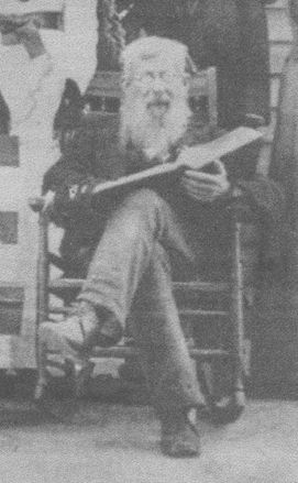 Rev. Thomas Spencer Dew (age about 86) holding his large Bible in about 1894 in Dothan, Alabama.