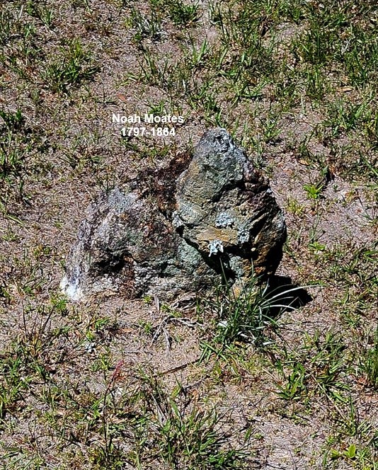 Deteriorated red sandstone monument assigned to Noah Moates father of Rachel Moates “Miley” Gleason, James W. Moates, and Francis Marion Moates, grandfather of James Marion Moates, the 2x grandfather of the author.