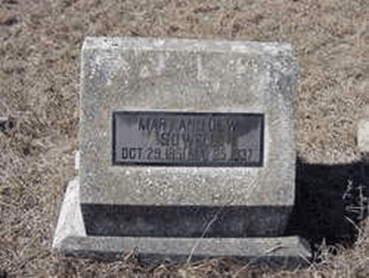 Tombstone of Mary Ann Dew Sowell (Oct 29, 1951 – 26 May 1937) in Euchee Valley Cemetery. Image from Find-a-grave.com.