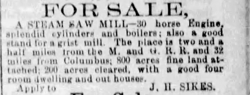 As the decades after the Civil War rolled on, the veterans attempted to regain their financial footing. I am persuaded that the brothers Moates operated a steam saw mill/grist mill on the Moates family farm. The source of this notion is the proximity of a millwright (Solomon Sikes) living next door to Francis in 1870 on the Folkes/White Creek farm. In the same census James’ occupation is listed as “miller.” Moreover, Francis later, after he immigrated to St. Andrews in Washington County in about 1890 until his death, operated a saw mill on the banks of St Andrews Bay. In aerial photographs from the early twentieth century we observe traces in the image of sawdust piles near where the carriageway crossed Folkes Creek. The prospect of Reconstruction-era relics of the mill lying buried in the sand on the banks of the creek is tantalizing. However, only a thorough survey, perhaps using a metal detector can confirm the conjecture. We can get an idea of the nature of the putative mill by examination of contemporary mills. Francis built a sawmill on the backbay of St. Andrews Bay that appeared on a Sanborn Fire Insurance map.