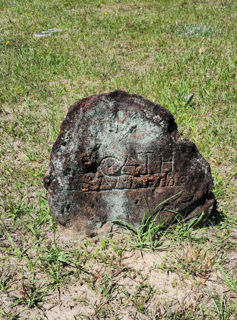 The error may have arisen because by the turn of the century the Moates clan had moved on from the Euchee Valley and the only record of their presence was the poorly marked graves of Noah and Elizabeth Moates in the Euchee Valley Cemetery. It would be a tragedy for all vestige of our family’s long residence in this place to be erased and forgotten. They were here; they persevered; they mattered. I resolve that though they are gone, they will not be forgotten in this place. All that remains of Harriet Elizabeth Moates tombstone is [M]oat H.